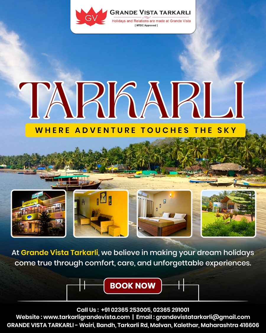 Welcome to Grande Vista Tarkarli, a clean, friendly, and MTDC-approved resort located in Malvan taluka, Sindhudurg district, Maharashtra. Just a few steps from pristine Tarkarli Beach, our resort offers the perfect stay for solo travelers, couples, families, and groups.